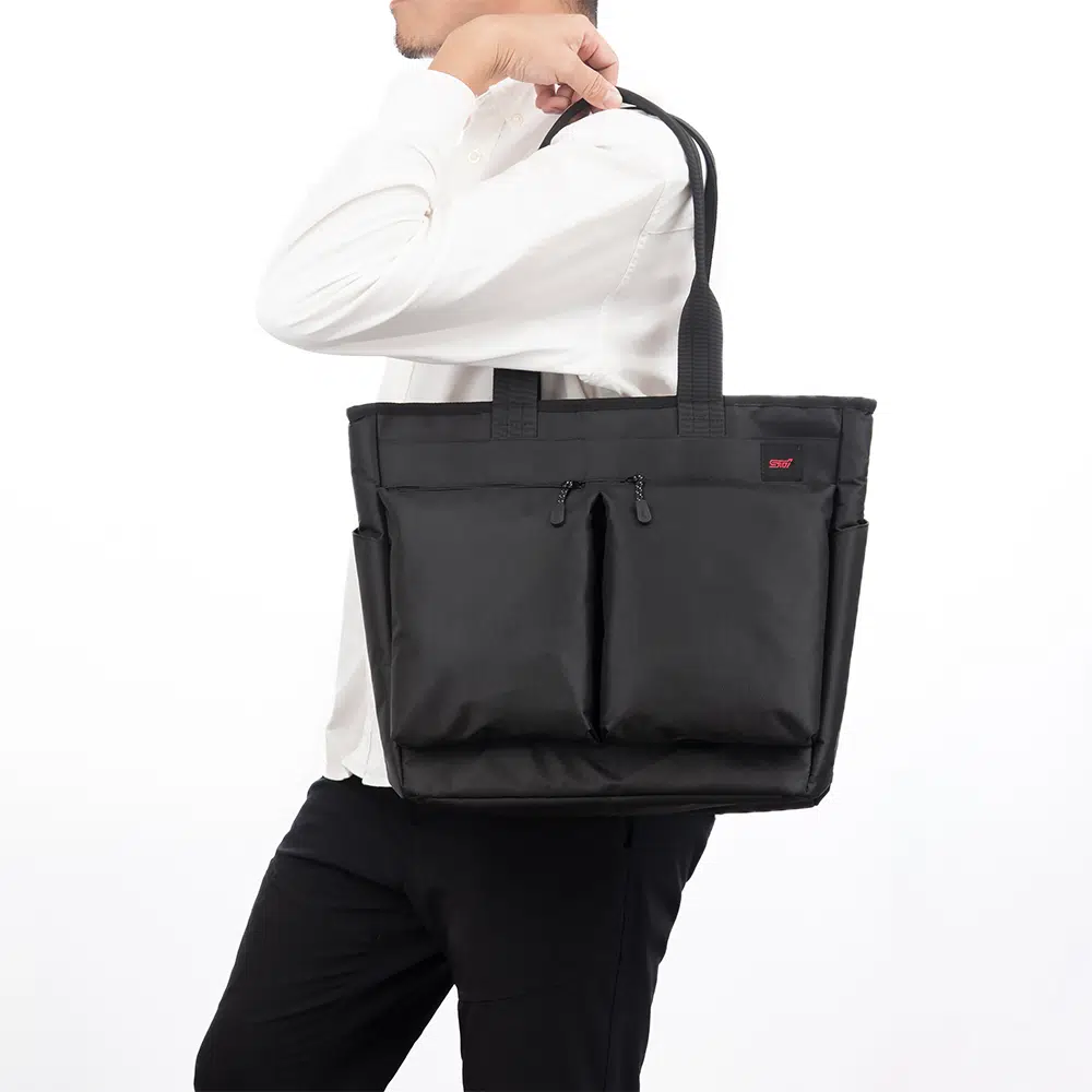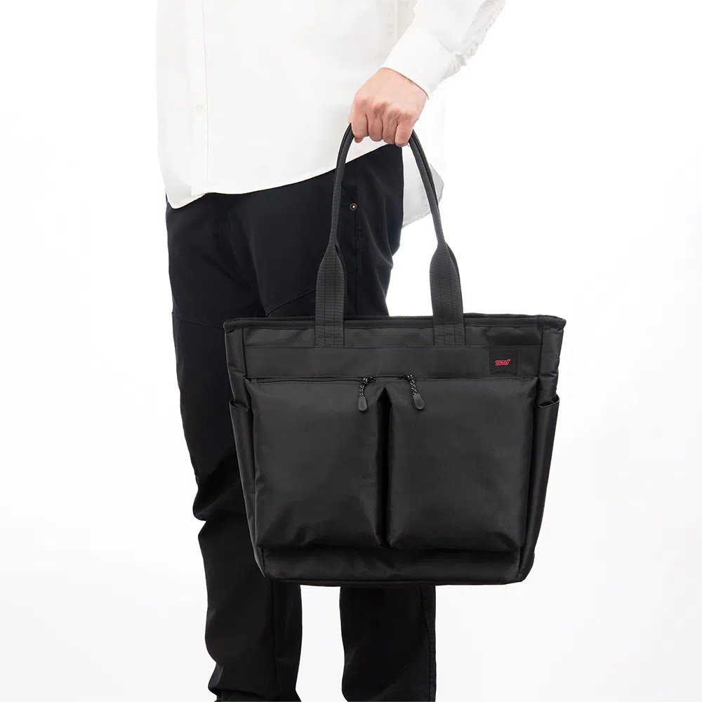 厚手で丈夫なポリエステル素材を使用したトートバッグです。