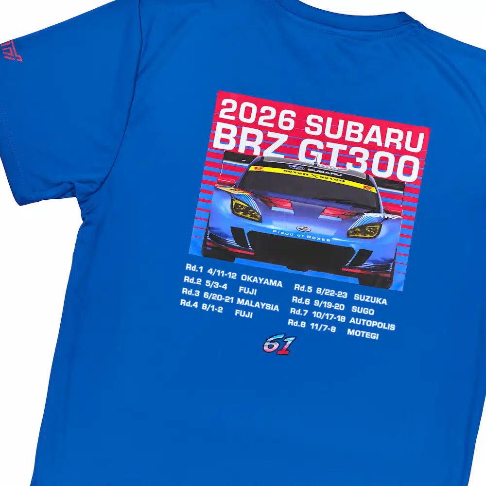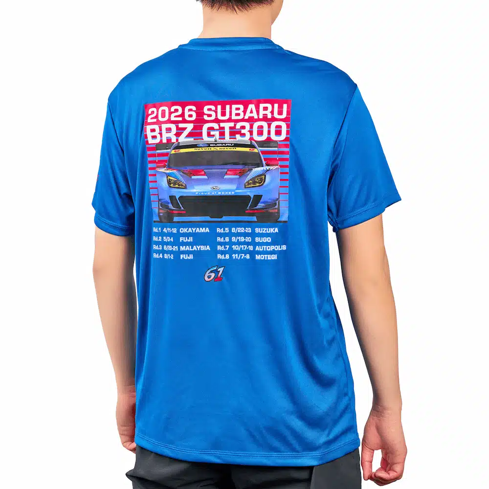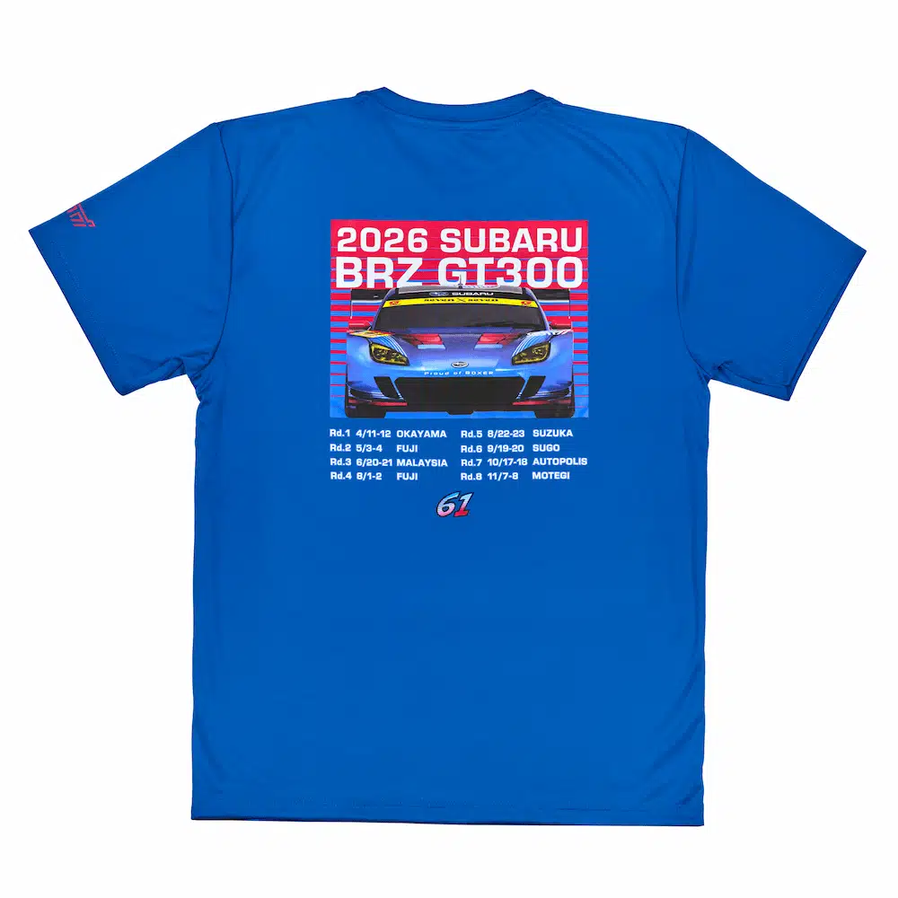SUBARU BRZ GT300 2026のイラストをデザインしたブルーのTシャツです。