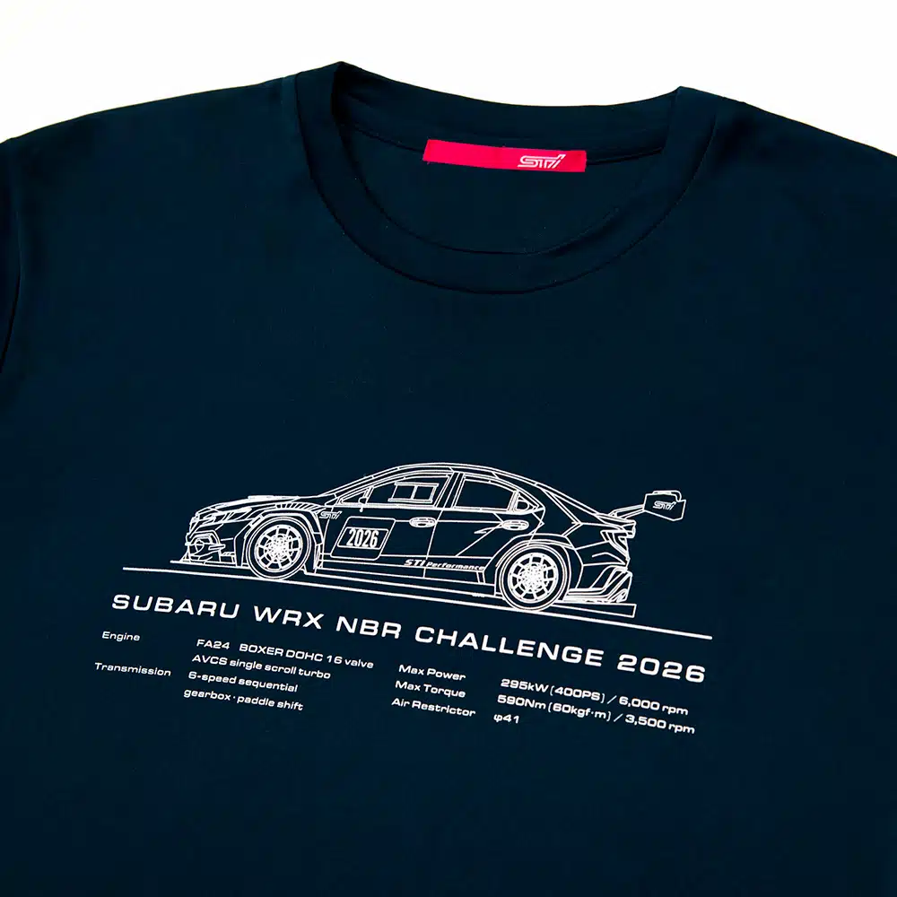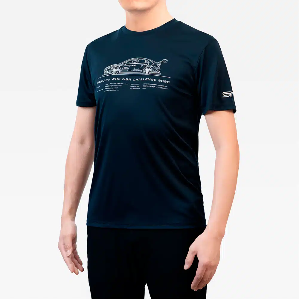 SUBARU WRX NBR CHALLENGE 2026のイラストをデザインしたネイビーのTシャツです。