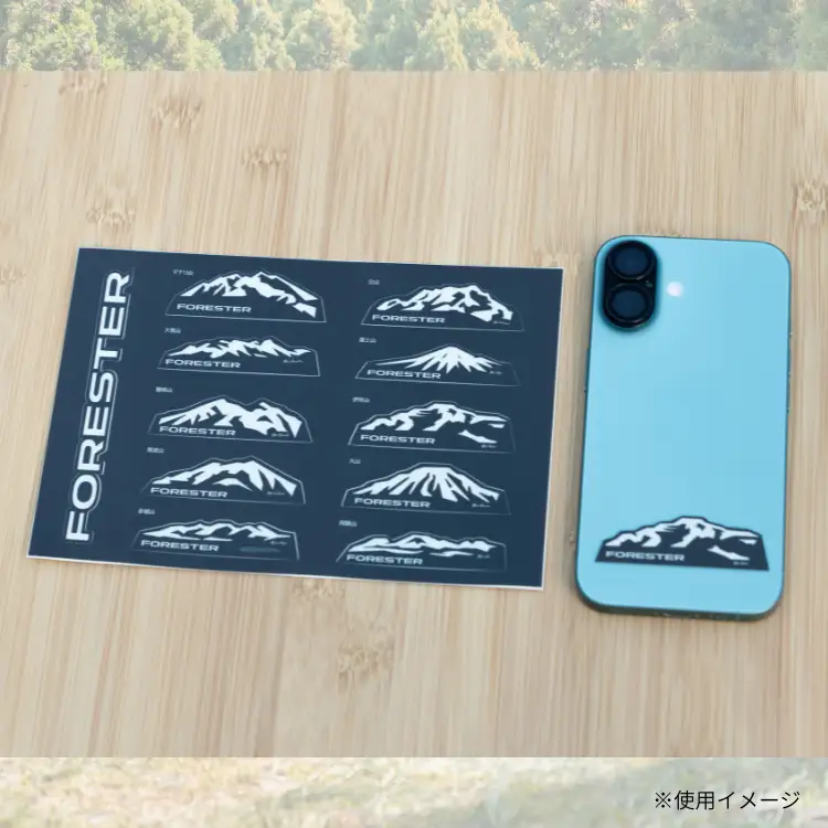 フォレスター(SL型)の純正アクセサリー「山デカール」のデザインをベースに、気軽に貼り付けやすいサイズ感のシールとして商品化しました。